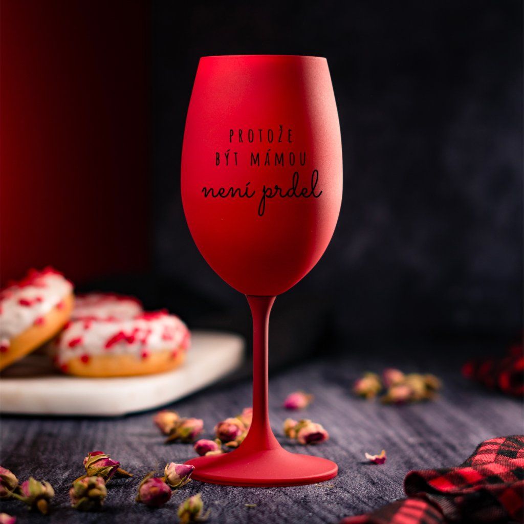 Bordová sklenice na víno 350 ml - PROTOŽE BÝT MÁMOU NENÍ PRDEL