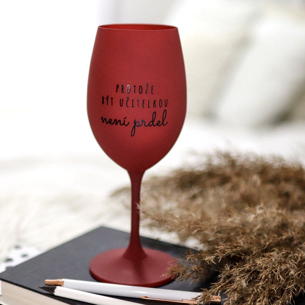 Bordová sklenice na víno 350 ml - PROTOŽE BÝT UČITELKOU NENÍ PRDEL