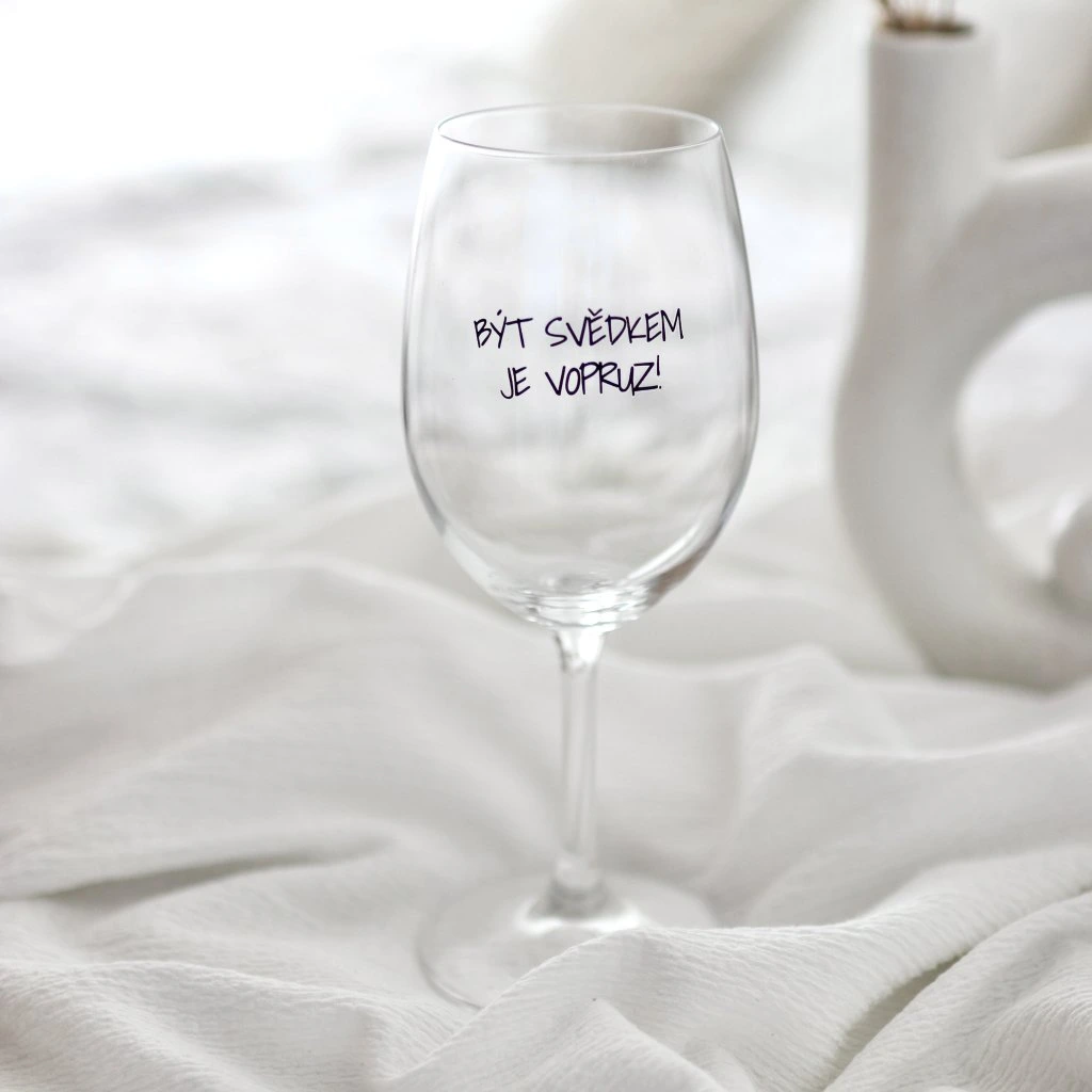 Čirá sklenice na víno 350 ml - BÝT SVĚDKEM JE VOPRUZ