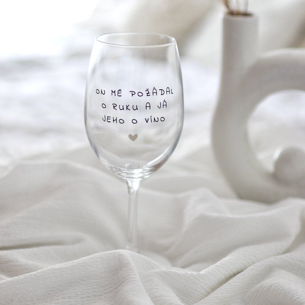 Čirá sklenice na víno 350 ml - ON MĚ POŽÁDAL O RUKU, JÁ JEHO O VÍNO