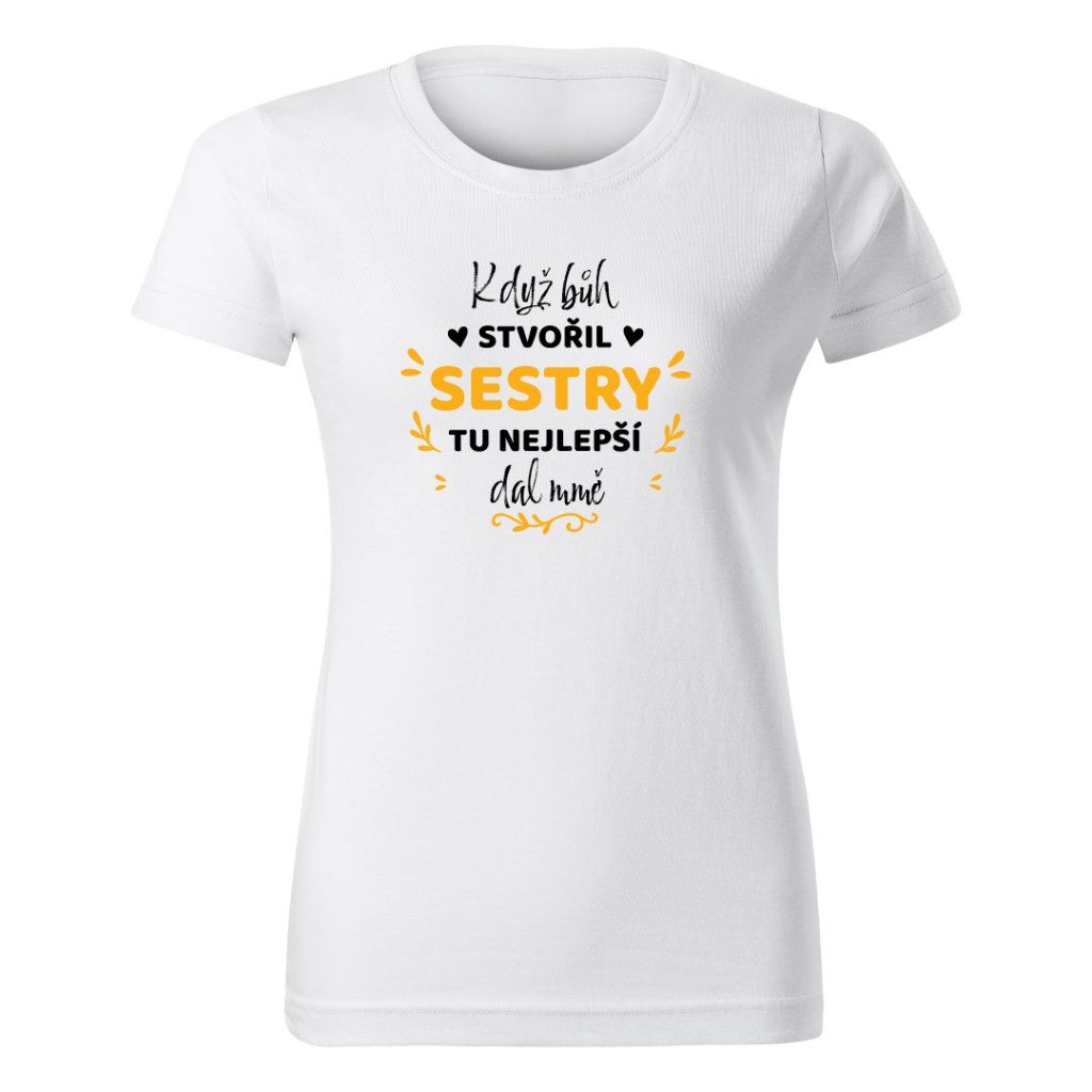 Dámské tričko s potiskem KDYŽ BŮH STVOŘIL SESTRY
