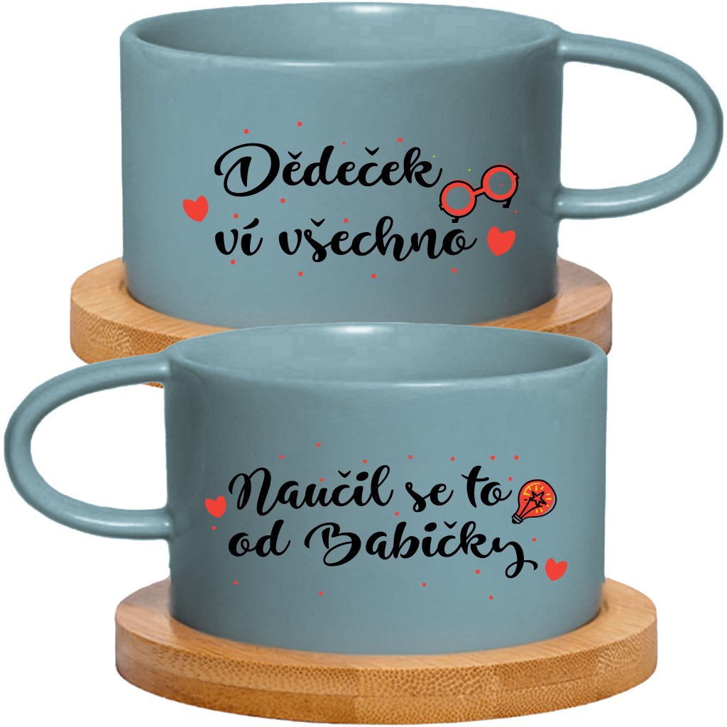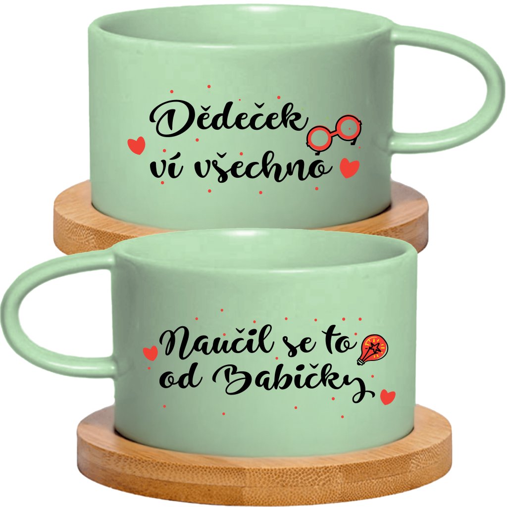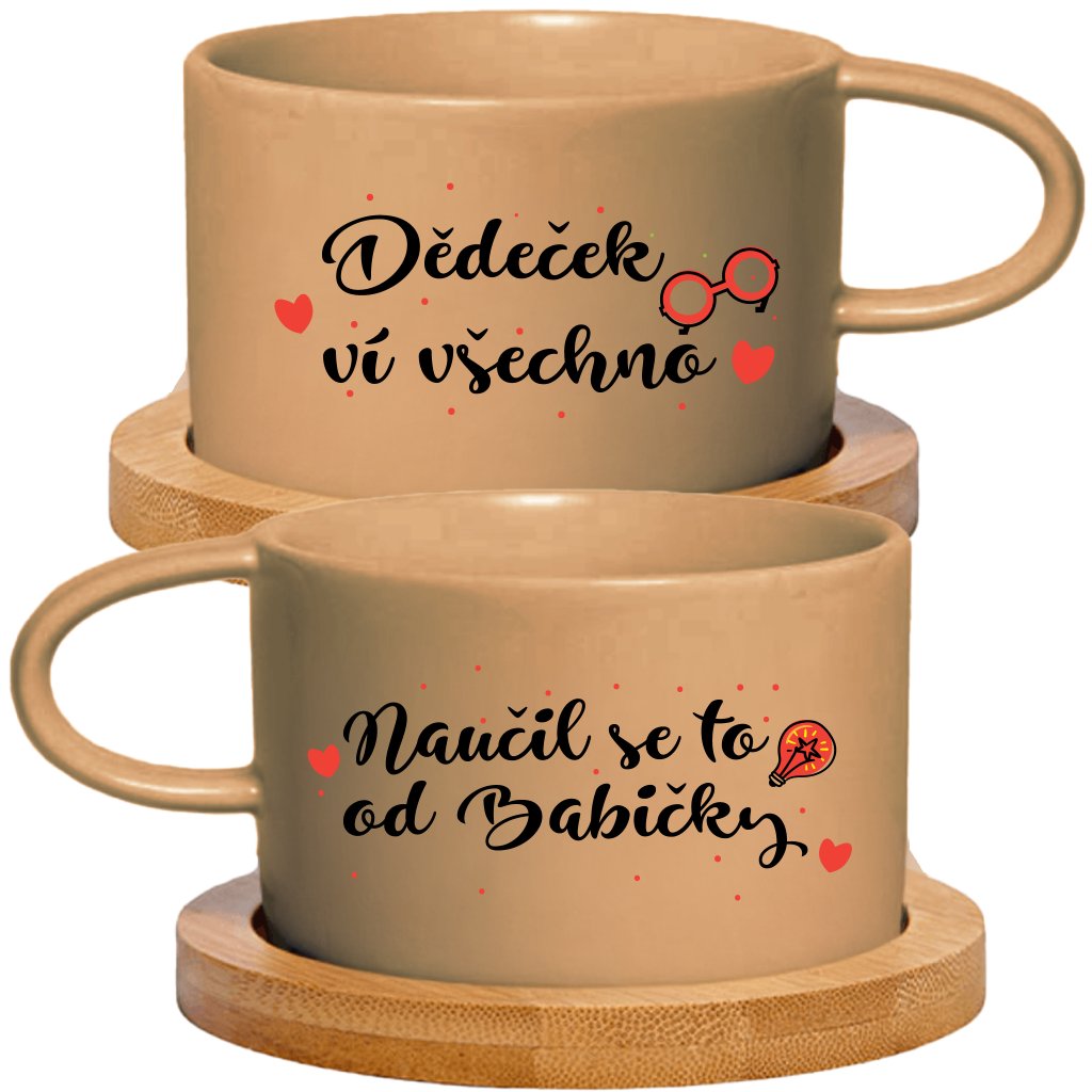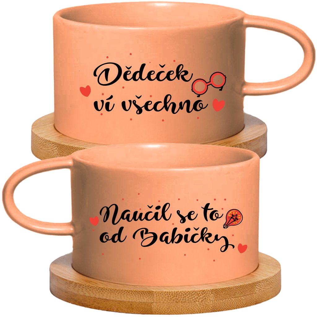 Párové Makronkové šálky 2x180 ml - DĚDEČEK VÍ VŠECHNO, NAUČIL SE TO OD BABIČKY