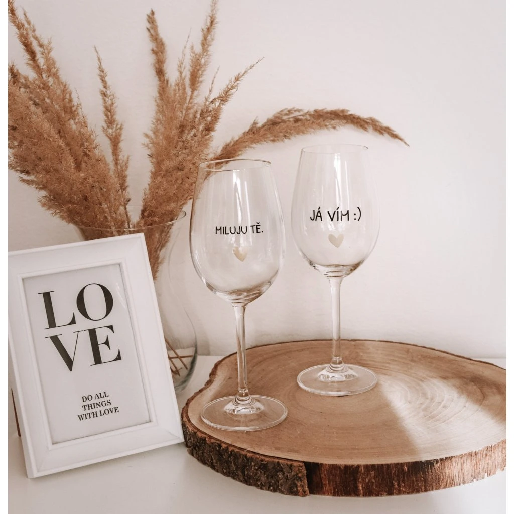 Párové sklenice na víno 2x350 ml - MILUJU TĚ, JA VÍM
