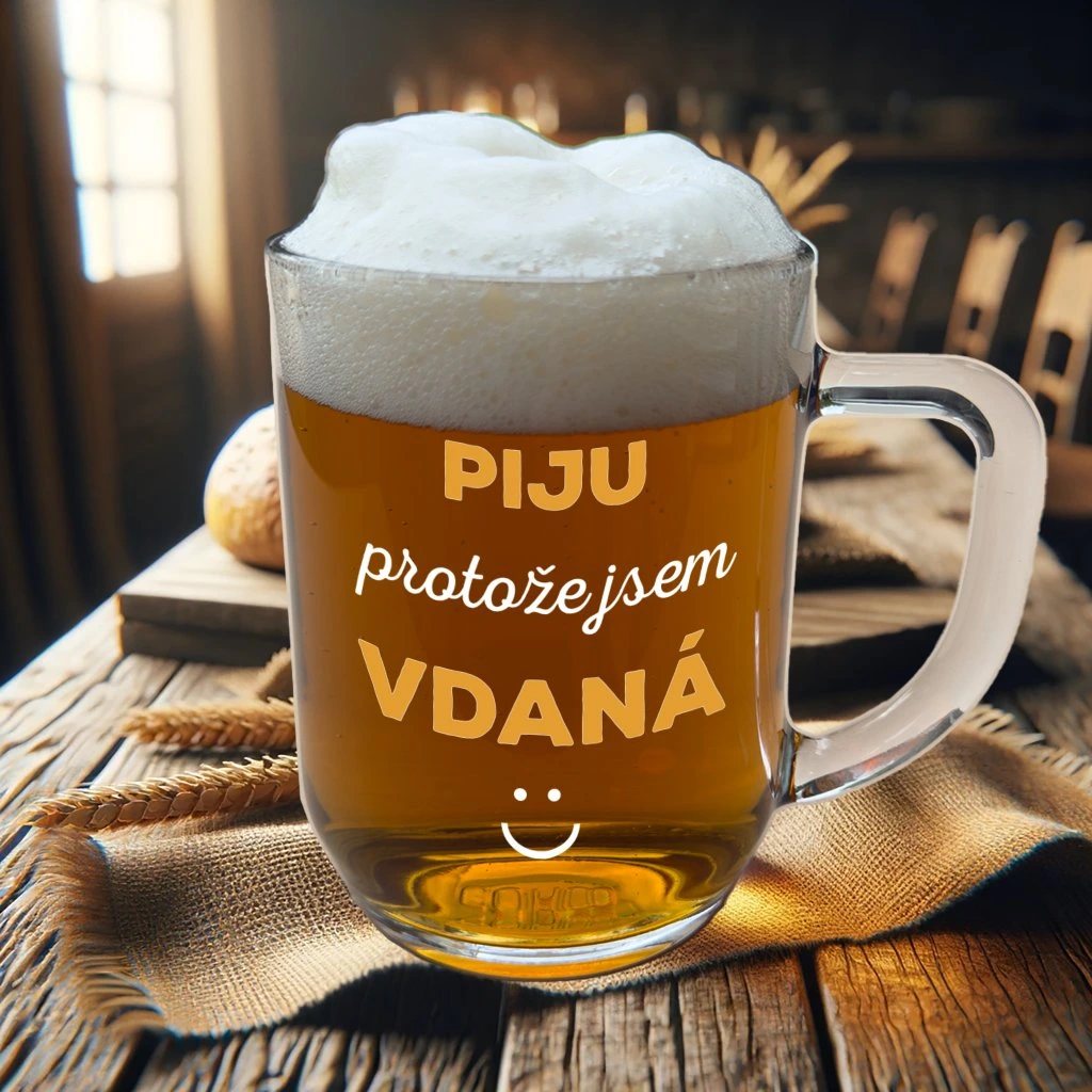 Pivní sklenice 0,5l - PIJU PROTOŽE JSEM VDANÁ