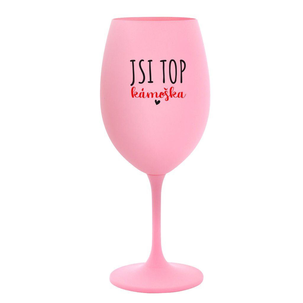 Růžová sklenice na víno 350 ml - JSI TOP KÁMOŠKA