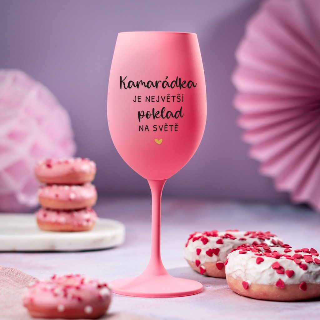 Růžová sklenice na víno 350 ml - KAMARÁDKA