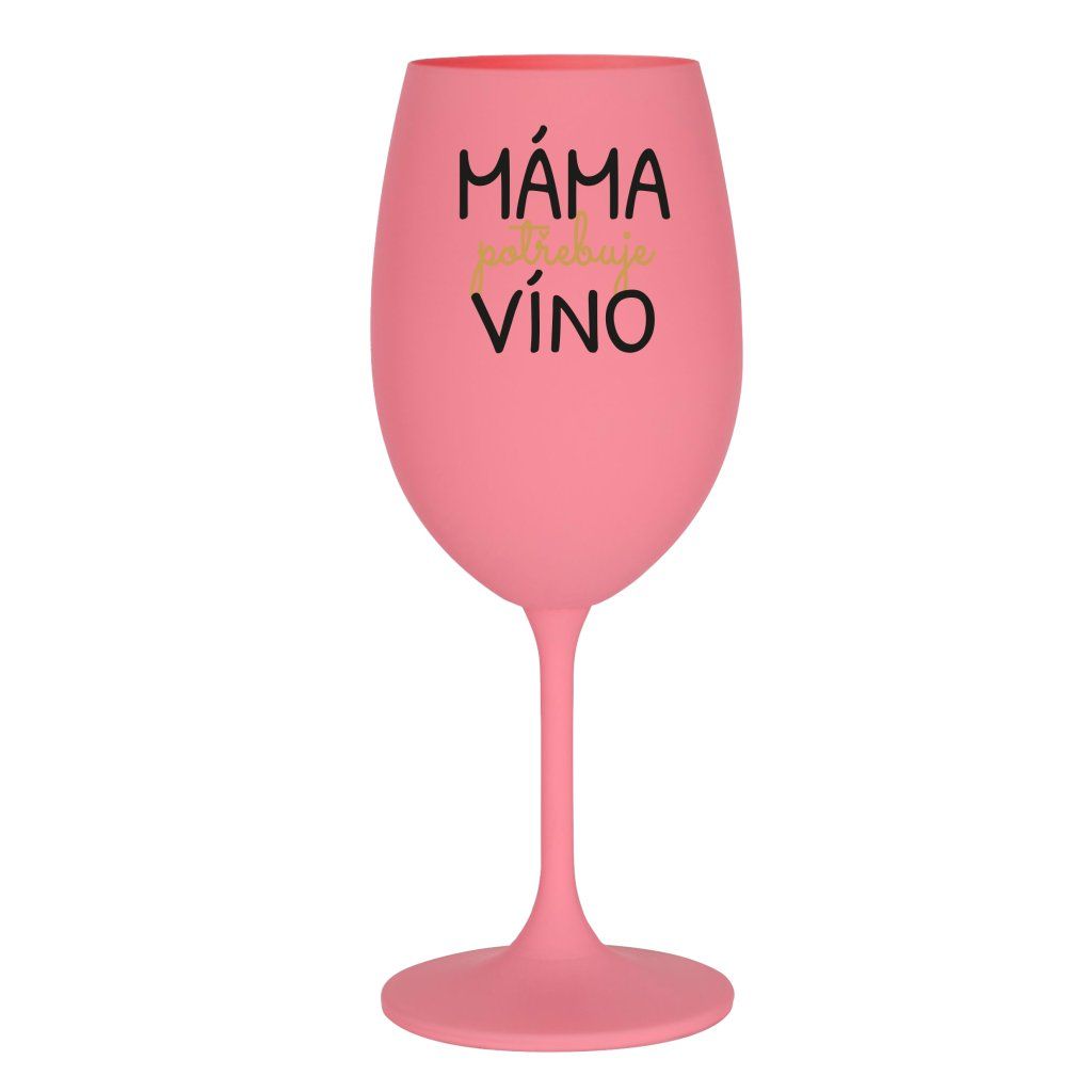 Růžová sklenice na víno 350 ml - MÁMA POTŘEBUJE VÍNO