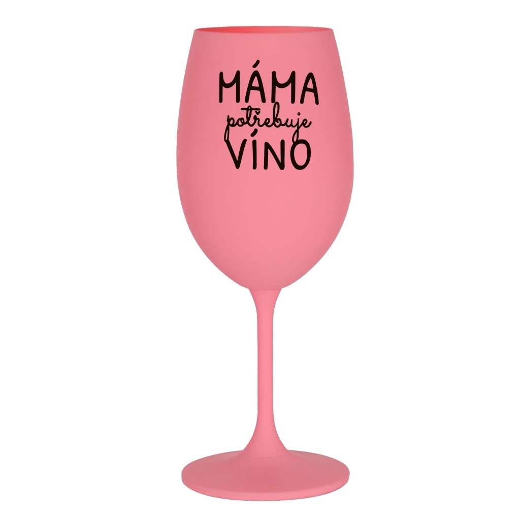 Růžová sklenice na víno 350 ml - MÁMA POTŘEBUJE VÍNO