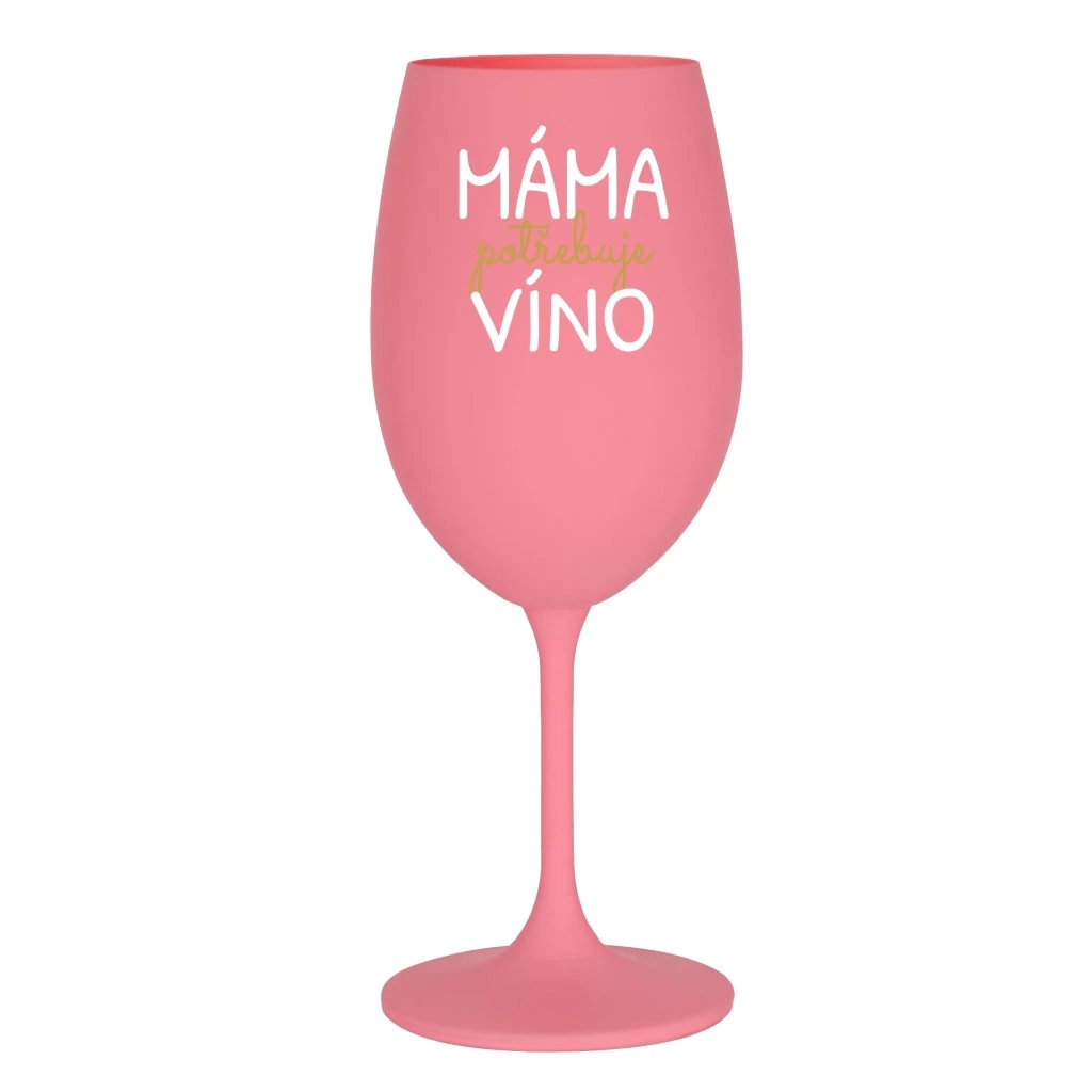 Růžová sklenice na víno 350 ml - MÁMA POTŘEBUJE VÍNO