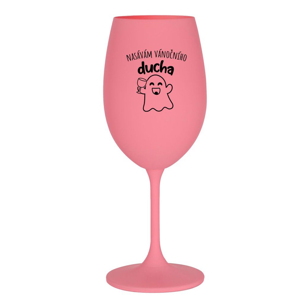Růžová sklenice na víno 350 ml - NASÁVÁM VÁNOČNÍHO DUCHA