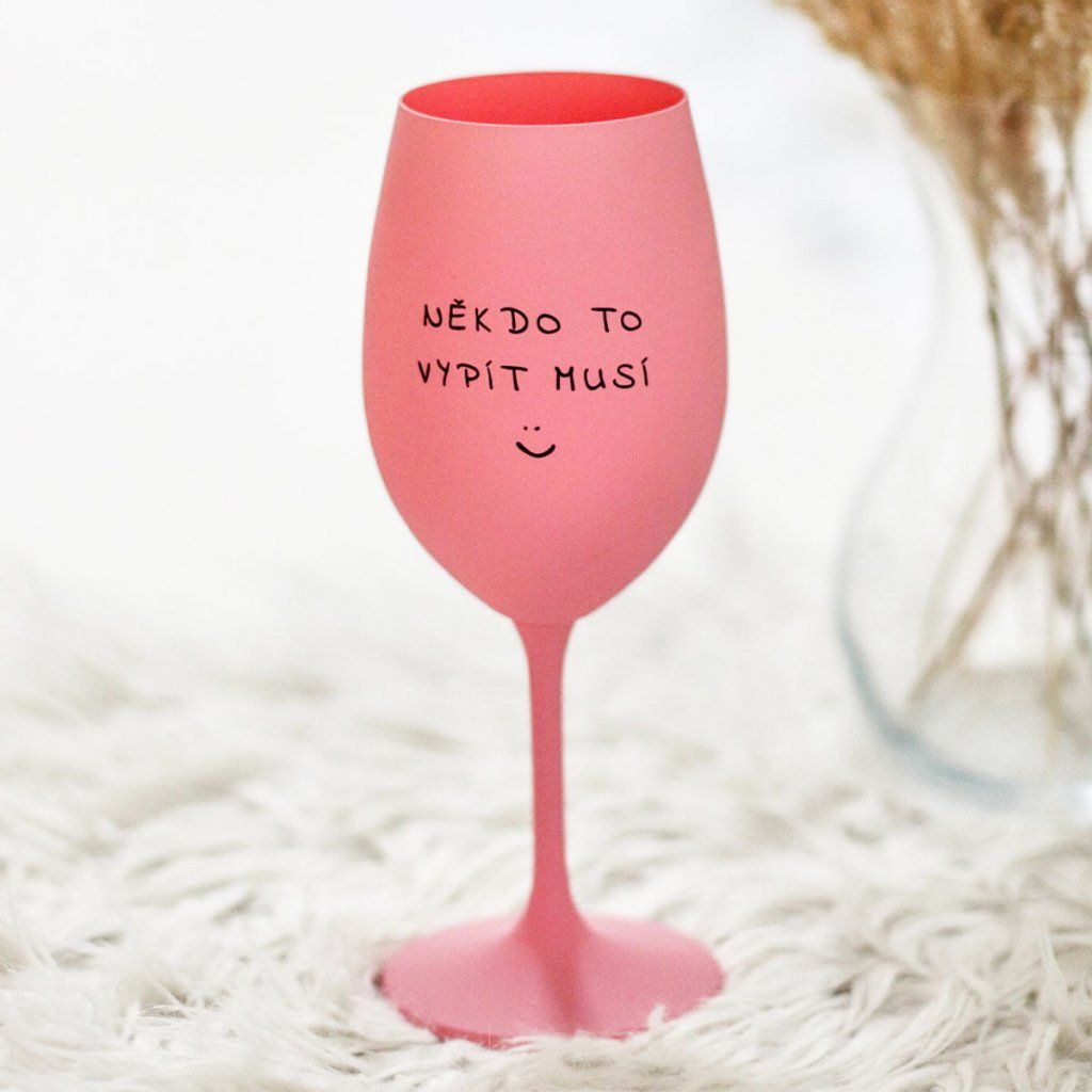 Růžová sklenice na víno 350 ml - NĚKDO TO VYPÍT MUSÍ