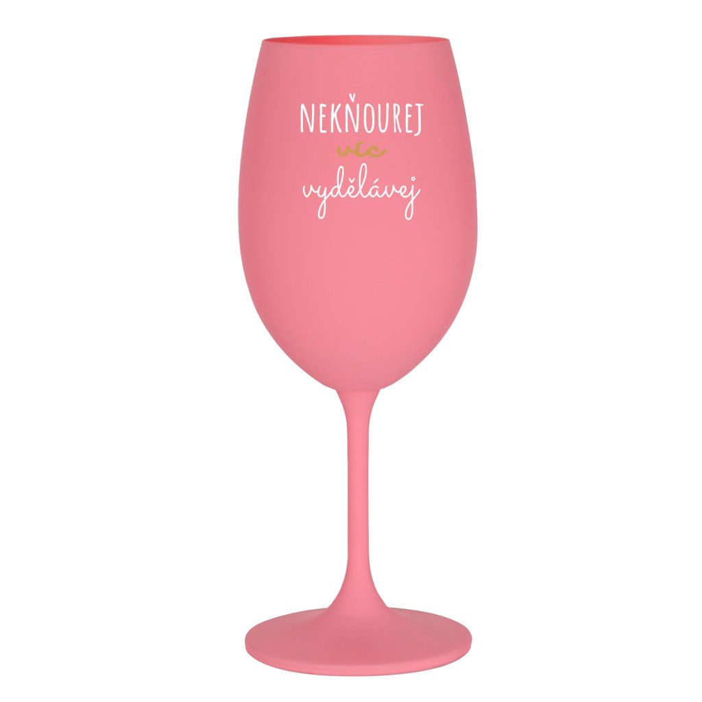 Růžová sklenice na víno 350 ml - NEKŇOUREJ VÍC VYDĚLÁVEJ