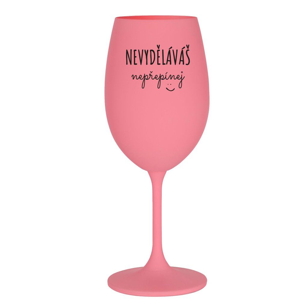 Růžová sklenice na víno 350 ml - NEVYDĚLÁVÁŠ NEPŘEPÍNEJ