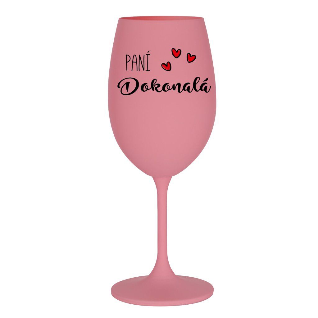 Růžová sklenice na víno 350 ml - PANÍ DOKONALÁ