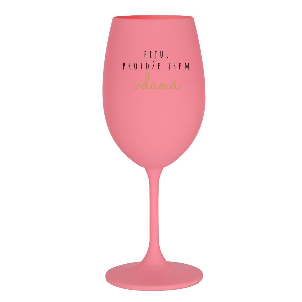 Růžová sklenice na víno 350 ml - PIJU PROTOŽE JSEM VDANÁ