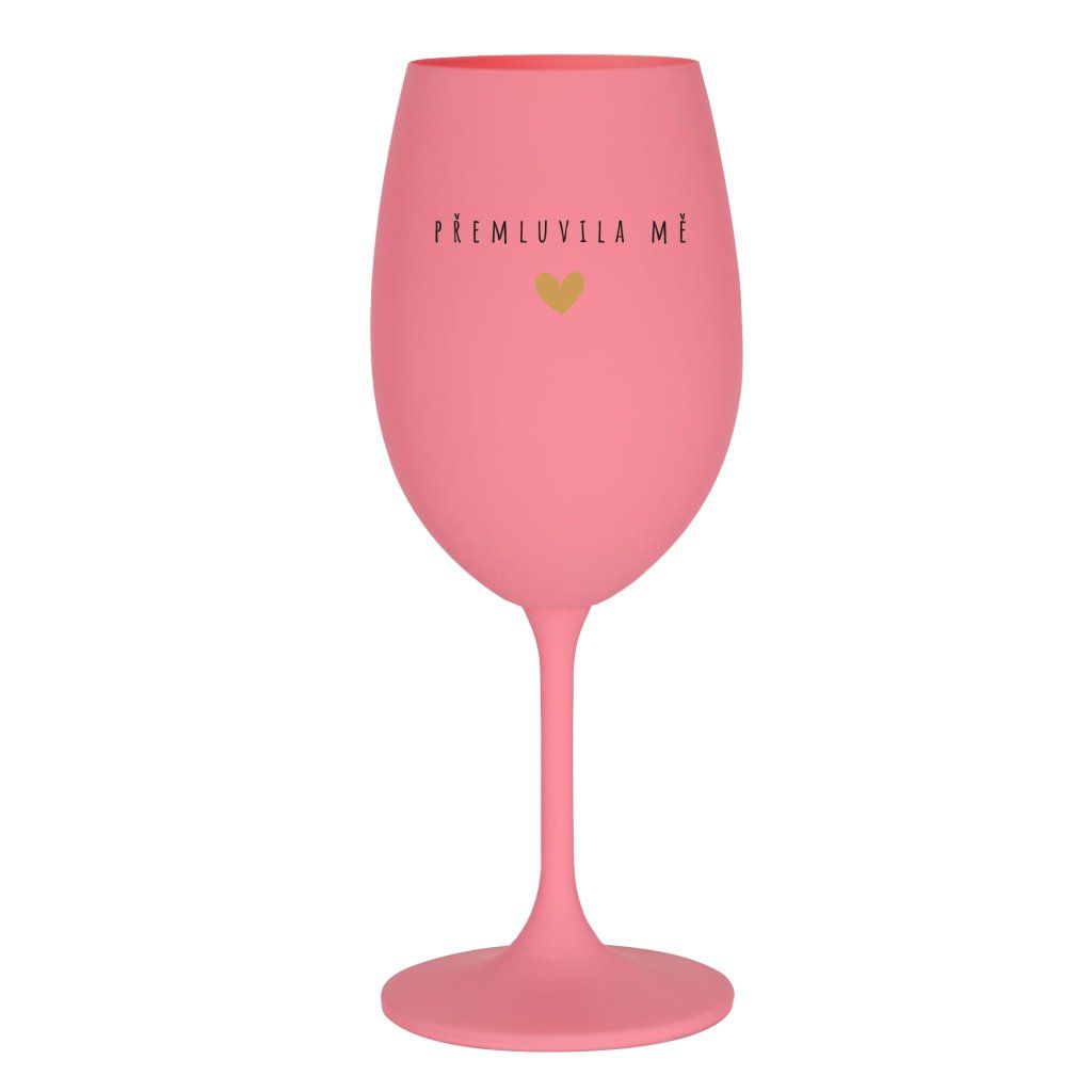 Růžová sklenice na víno 350 ml - PŘEMLUVILA MĚ