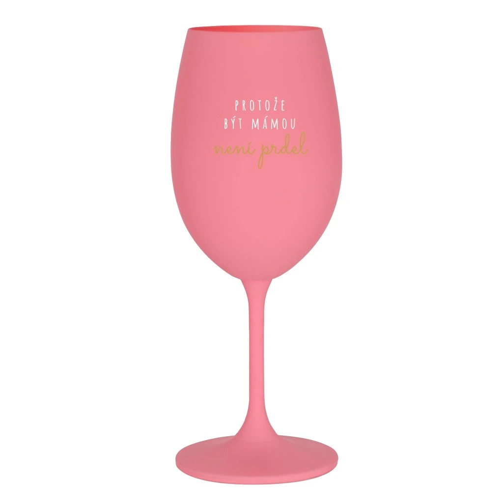 Růžová sklenice na víno 350 ml - PROTOŽE BÝT MÁMOU NENÍ PRDEL