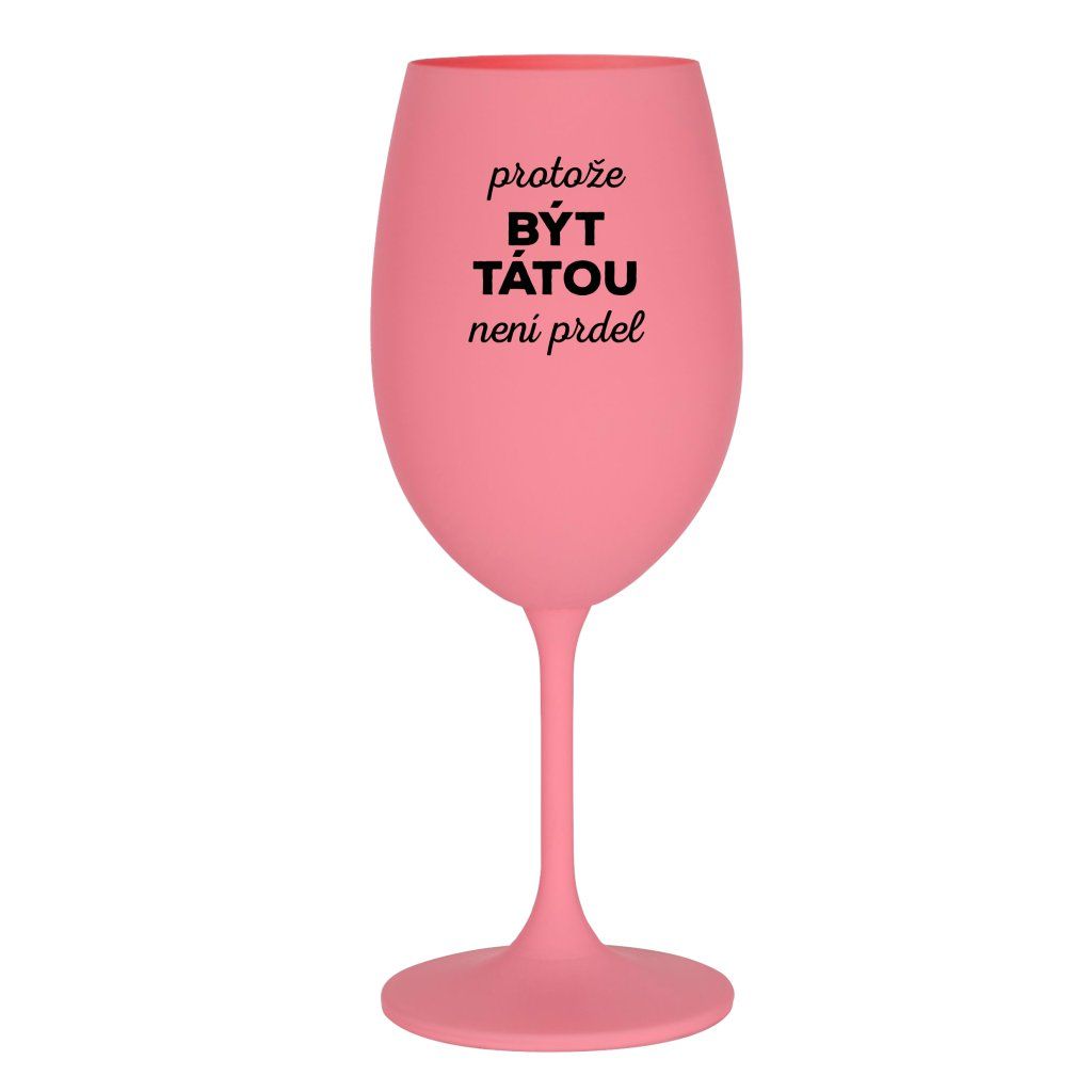 Růžová sklenice na víno 350 ml - PROTOŽE BÝT TÁTOU NENÍ PRDEL
