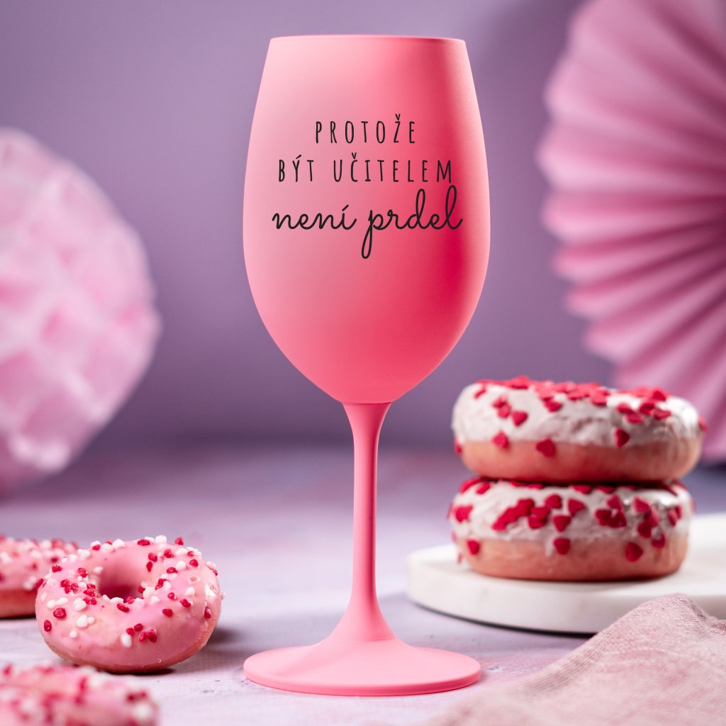 Růžová sklenice na víno 350 ml - PROTOŽE BÝT UČITELEM NENÍ PRDEL 2