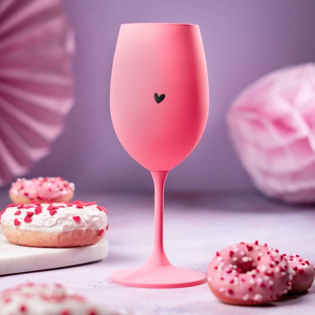 Růžová sklenice na víno 350 ml - SRDÍČKO černé