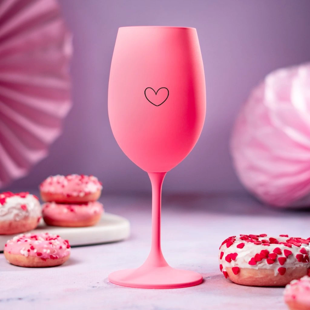 Růžová sklenice na víno 350 ml - SRDÍČKO PRÁZDNÉ