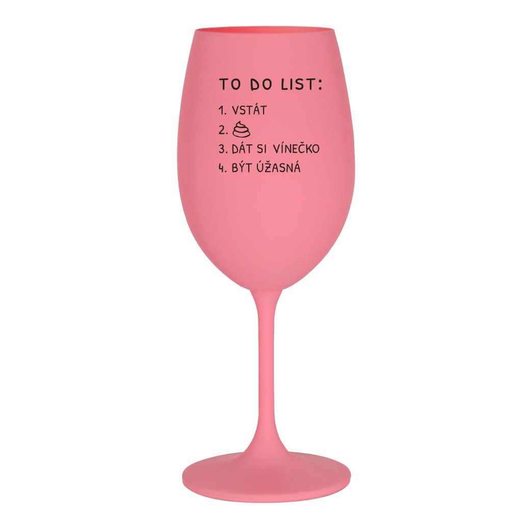 Růžová sklenice na víno 350 ml - TO DO LIST ÚŽASNÁ