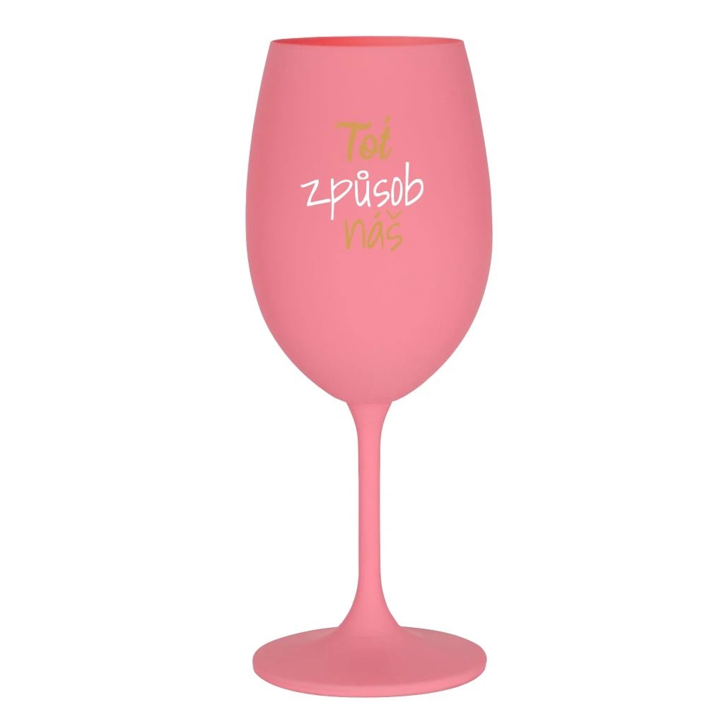 Růžová sklenice na víno 350 ml - TOŤ ZPŮSOB NÁŠ