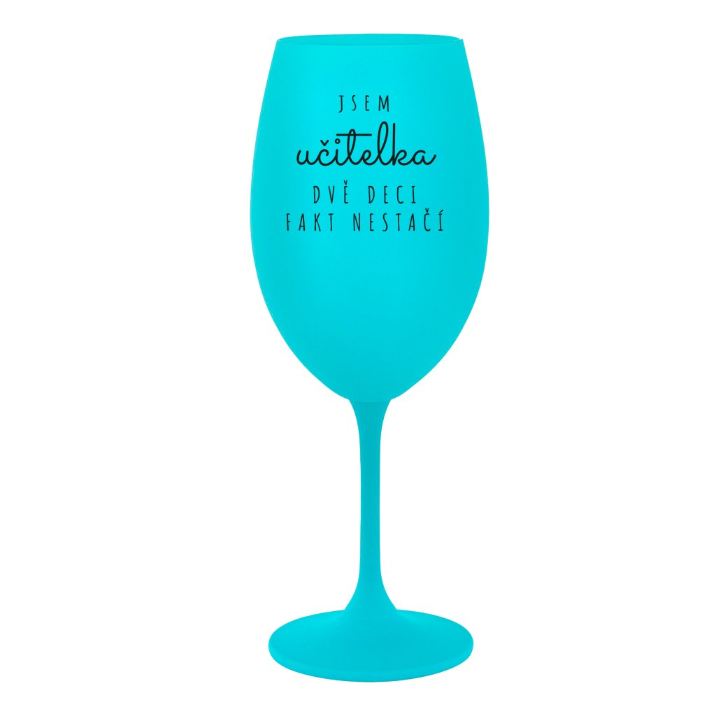 Tyrkysová sklenice na víno 350 ml - JSEM UČITELKA DVĚ DECI FAKT NESTAČÍ