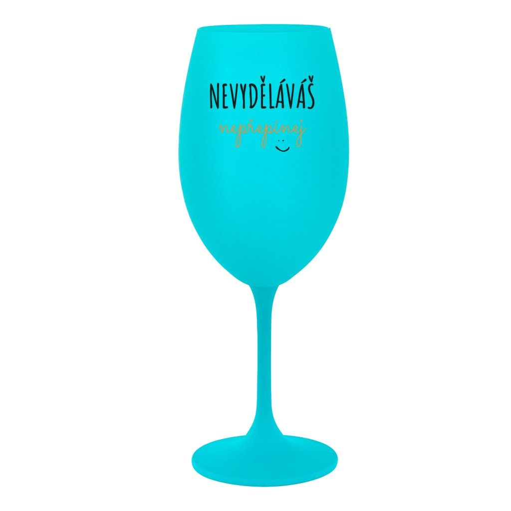 Tyrkysová sklenice na víno 350 ml - NEVYDĚLÁVÁŠ NEPŘEPÍNEJ