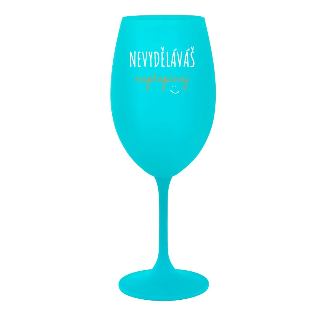 Tyrkysová sklenice na víno 350 ml - NEVYDĚLÁVÁŠ NEPŘEPÍNEJ