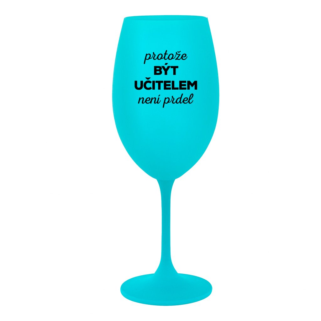Tyrkysová sklenice na víno 350 ml - PROTOŽE BÝT UČITELEM NENÍ PRDEL