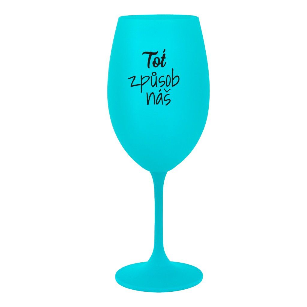 Tyrkysová sklenice na víno 350 ml - TOŤ ZPŮSOB NÁŠ